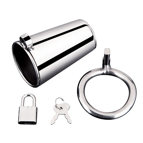 To get it on them, or yourself, apply some lube to the cock in question and gently pull your testicles through the ring before bending your non-erect shaft downwards into the cage. Lock it up with the padlock included, and when you’re done use the keys included to unlock the cage!