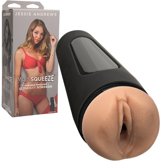 The Main Squeeze Jessie Andrews Pussy Stroker by Doc Johnson is a male masturbation sex toy and is part of the Docs hard case masturbators and is always in reach. Main Squeeze starring our most popular porn star molds designed to put the power in your hands.