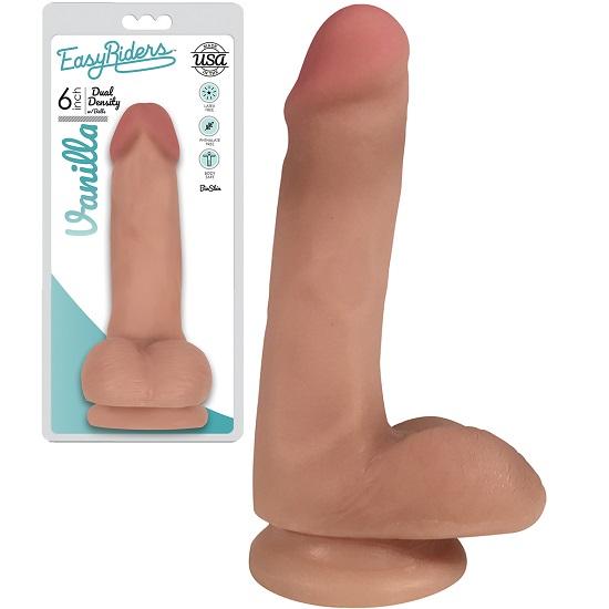 The Easy Riders 6 Inch Slim Bioskin Dildo With Balls by Curve Toys with Life-like realistic textures that look and feel just like the deal. The Easy Riders 6″ realistic dildo is made of Dual Density Bioskin material, meticulously handcrafted and formulated to mimic the real texture and firmness just like a real cock once inserted into the vagina or anus.