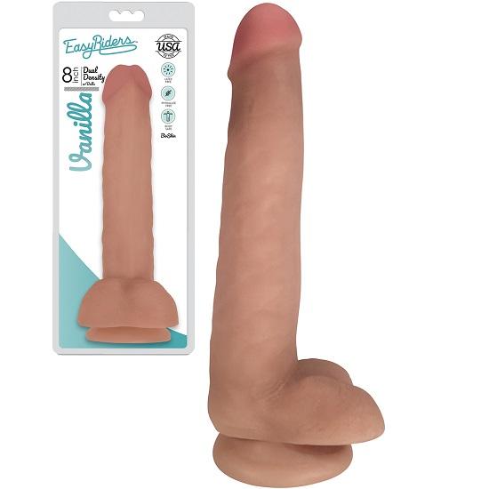 The Easy Riders 8 Inch Slim Bioskin Dildo With Balls by Curve Toys with Life-like realistic textures that look and feel just like the deal. The Easy Riders 8″ realistic dildo is made of Dual Density Bioskin material, meticulously handcrafted and formulated to mimic the real texture and firmness just like a real cock once inserted into the vagina or anus.