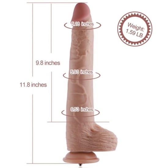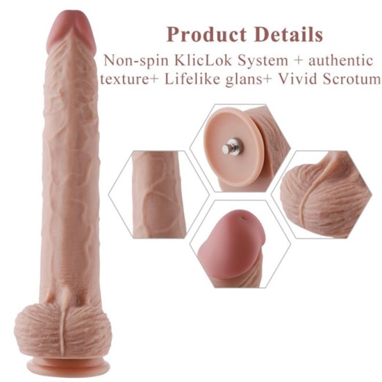 This KlicLok 11.8 Inch silicone dildo has a quick connect specially designed for the user to swap attachments over nice and quickly on your HiSmith Premium sex machine.