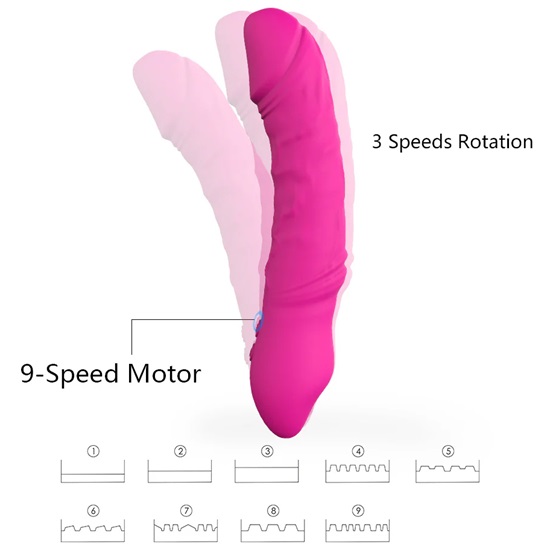 Designed with a realistic soft squeezable silicone shaft, textured veins for added stimulation. Use Lucious with or without the vibrations, or fire up the 360 degrees rotating shaft, experiment with the vibrations and rotating shaft at the same time simultaneously. “This is sure to hit your hot spot”!