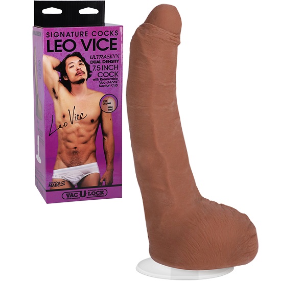 The Signature Cocks Leo Vice 7.5 Inch Ultraskyn Dildo With Balls by Doc Johnson is a vaginal and anal stimulating sex toy for women and men. This realistic dildo is flexible and soft to the touch and molded directly from Leo Vice the pornstars cock! The realistic textured details and Ultraskyn lifelike skin material makes the feel and flexibility of a real 7.5 inch cock.