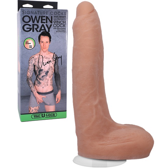 The Signature Cocks Owen Gray 9 Inch Ultraskyn Dildo With Balls by Doc Johnson is a vaginal and anal stimulating sex toy for women and men, this realistic dildo is flexible and soft to the touch. Moulded directly from the Owen Gray porn star! the realistic textured details are Ultraskyn lifelike skin material making the feel and flexibility of a real 9 inch cock.