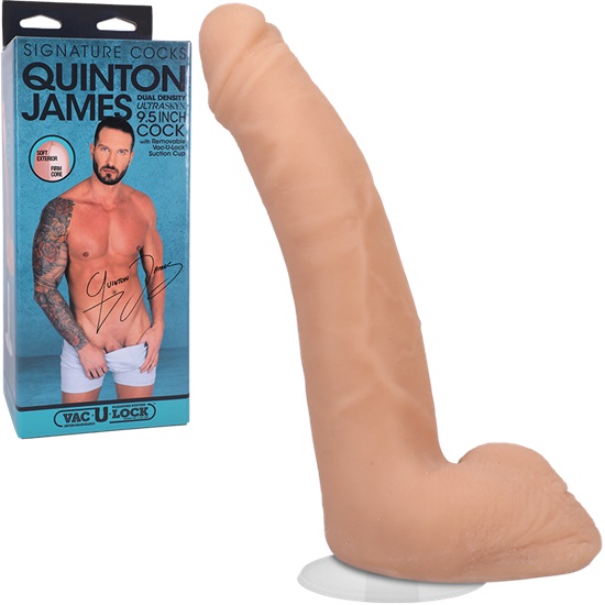 The Signature Cocks Quinton James 9.5 Inch Ultraskyn Dildo With Balls by Doc Johnson is a vaginal and anal stimulating sex toy for women and men, this realistic dildo is flexible and soft to the touch. Moulded directly from the Quinton James porn star! the realistic textured details are Ultraskyn lifelike skin material making the feel and flexibility of a real 9.5 inch cock.