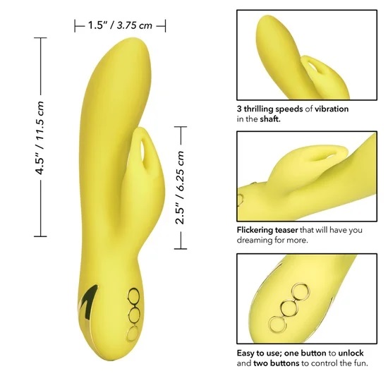The California Dreaming Venice Vixen Rabbit Vibrator by CalExotics is a dual-stimulating rechargeable women’s sex toy! targets your g-spot with its vibrating shaft, whilst the rabbit ear vibrates and flickers on your clitoris simultaneously bringing you to ecstasy.